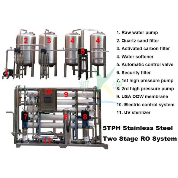 Water Softener System 5000LPH Two Stage One Work One Standby Auto SS RO Water Purification Plants