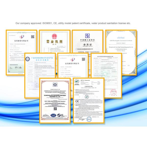 We are executive director unit of China Water Enterprises Confederation Desalination Branch and member of MIAC(China Membrane Industry Association). Approved CE, SGS and ISO. If your goverment need it, we can sent you^^